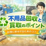 不用品回収と買取のポイント|お得に処分するためのコツ 2026.03.16 ブログ ♻️不用品回収と買取のポイント|お得に処分するためのコツ 引っ越しや大掃除、遺品整理などを行うと、さまざまな不用品が出てきます。 「まだ使えるけれど不要」「処分方法がわからない」と悩む人も多いのではないでしょうか。 そん… 詳しくはこちら